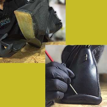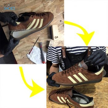 - Treatment penyatuan kembali bagian sepatu yang lepas dengan cara di lem.